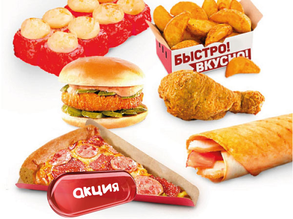 ГамбургерЧикен Круткусочек Детскаякартофель по-деревенскиножка куринаяКалифорния ХОТ с лососем New