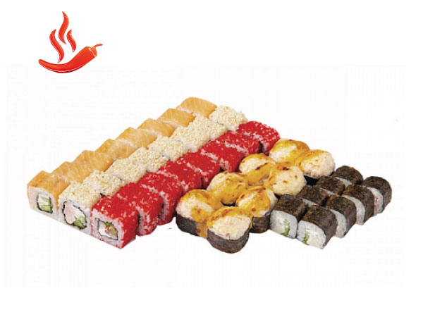 Детский с крабом 8 штРакуда ХОТ 8 штЧикен 8 штФиладельфия Лайт 8 штКалифорния New с креветкой 8 штнабор для роллов 2 шт